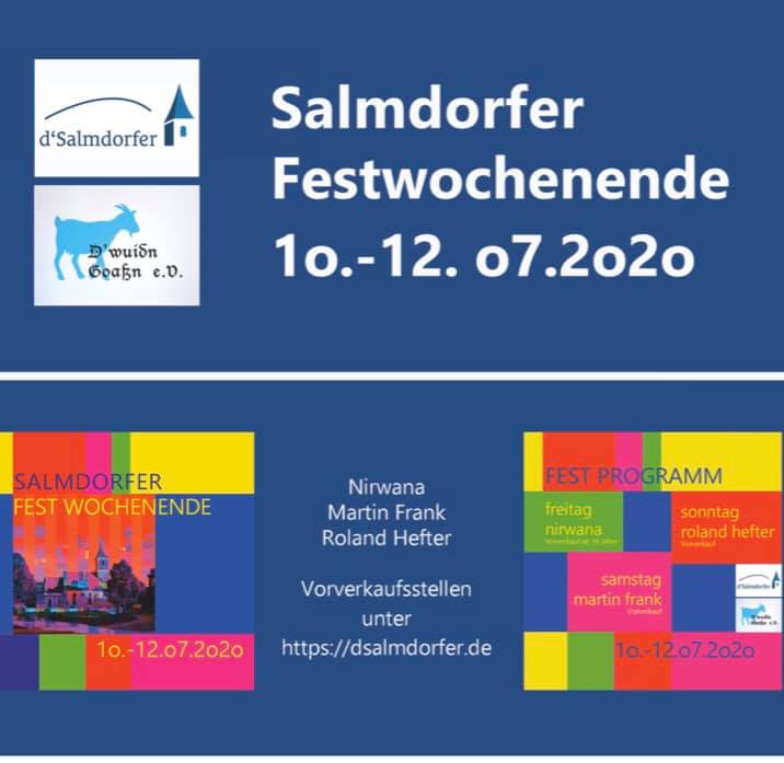 Festwochenende 10.07-12.2020 Programm: Freitag Wein & Weißbierfest mit Nirwana Eintritt 8€ Samstag Familientag Abends Martin Frank Eintritt 21€ Sonntag…